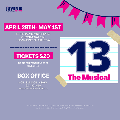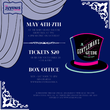 Tickets are now available through the Grand Theatre box office! The show is at the Baby Grand Theatre (218 Princess St, Kingston, ON K7L 1B2).